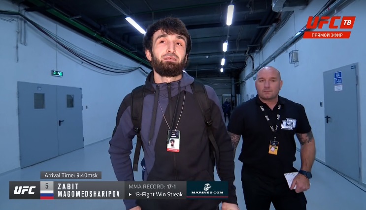 Участник главного боя сегодняшнего вечера Забит Магомедшарипов уже прибыл на арену.