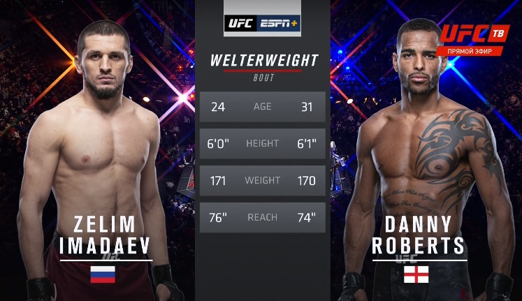 Для Имадаева это второй бой в UFC, первый он проиграл. Робертс же выходит в октагон в UFC уже в 10-й раз.