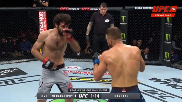 Ну а теперь главный бой вечера: Забит Магомедшарипов против Кельвина Кэттера!