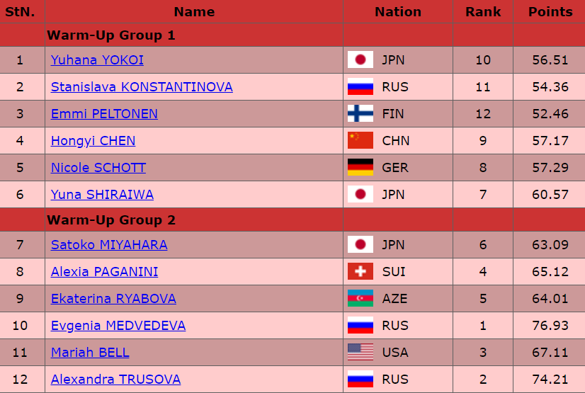 А вот в таком порядке фигуристки сегодня выйдут на московский лед: