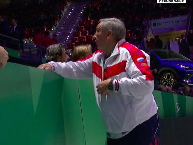 На матче присутствует глава Федерации тенниса России Шамиль Тарпищев.