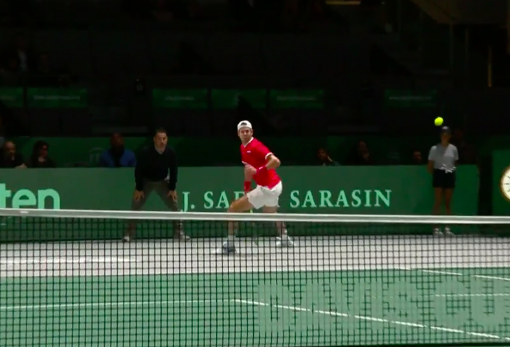Серб идеально перевел по линии, отвечая на подачу соперника. 0:15.