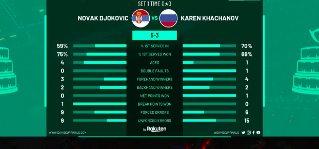Хачанов заставил немного понервничать, допустив двойную ошибку, однако затем снова выполнил блестящую подачу и быстро забрал гейм. 4:2 в первом сете — по-прежнему в пользу Джоковича.
