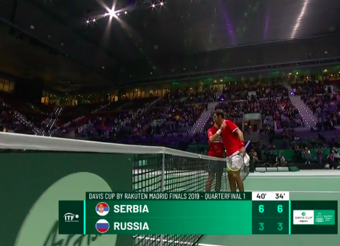Итак, после одиночных матчей счет в противостоянии сборных России и Сербии в 1/4 финала Кубка Дэвиса равный — 1:1. Рублев выиграл у сербского оппонента, а Хачанов проиграл. Это значит, что участник полуфинала определится после матча пар, который состоится совсем скоро в этот же день.