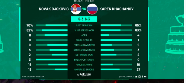 Джокович обыграл Хачанова в матче 1/4 финала Кубка Дэвиса