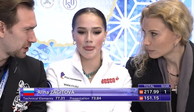 Загитова, конечно же, выходит на первое место. Но главное, что ее теперь вряд ли выбьют из тройки!