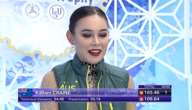 Соревнования открывает австралийская фигуристка Кейлани Крейн.