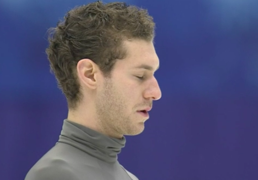 Аймо должен был начать с четверной тулуп + тройной тулуп, но выезд с первого прыжка получился крайне неудачным — степ-аут. Француз едва удержался от падения, так что второй прыжок присоединять не стал.