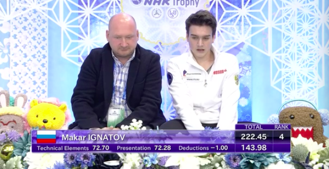 В целом для россиян не самые утешительный итоги этапа в Японии: Макар Игнатов стал только седьмым и не смог пробиться в финал Гран-при, Сергей Воронов упустил третью строчку, которую занимал после короткой программы, и медаль. Антон Шулепов сейчас не в лучшей форме, так что занял лишь восьмое место.