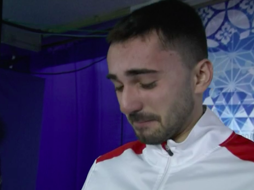 Кевин Аймо не может поверить, что со слабым прокатом произвольной смог стать вторым и плачет в подтрибунном помещении. Он обошел Воронова за счет того, что получил высшие уровни на дорожке и вращениях, в отличие от россиянина.