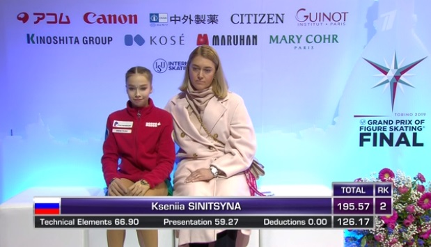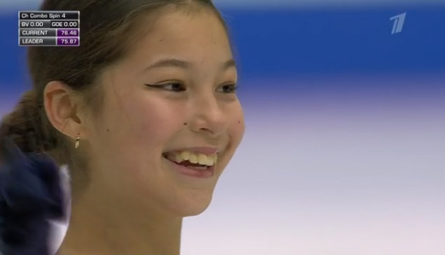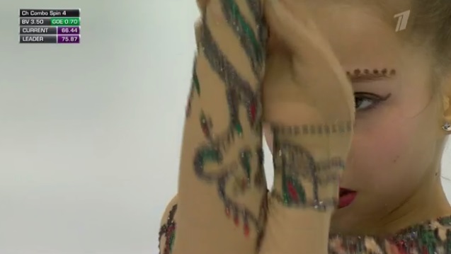 Итак, Синицына показывает третий прокат сегодня, но по сумме вторая, все же уступив Валиевой.