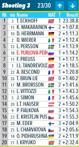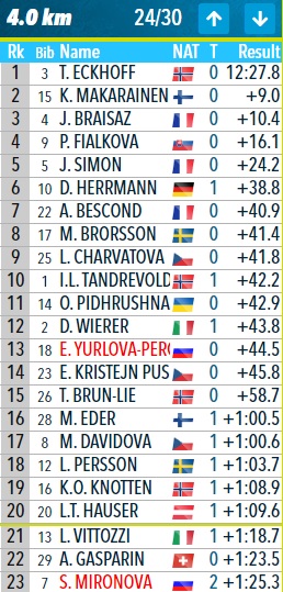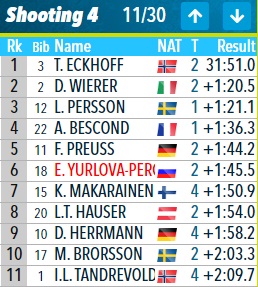 Юрлова-Перхт по-прежнему пятая, сразу за Вирер. Но Мяккарайнен и Херрманн сделали себе по отрывчику.