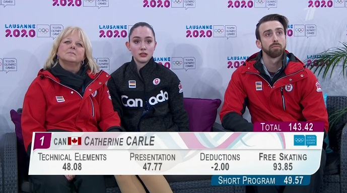 Итак, Карл получает лучшие на сегодня оценки и становится лидером. Но сама она и на 10 баллов лучше в карьере произвольную катала.