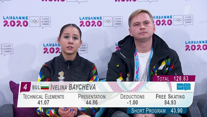 В самом начале произвольного проката выдала отличный каскад 3 лутц — 2 тулуп. Правда, в итоге и болгарка не обошлась без неудачных прыжков, коих набралось два. Зато Байчева продемонстрировала в стиле Анны Щербаковой и Александры Трусовой трюк с меняющим цвет по ходу проката платьем — с ярко-синего на черный. Болгарка была последней в короткой программе, посмотрим, поднимется ли теперь.