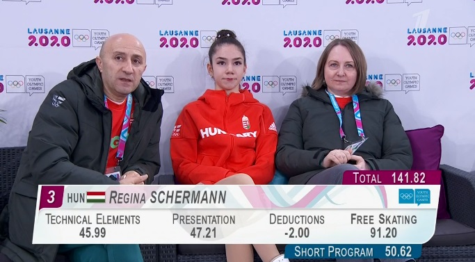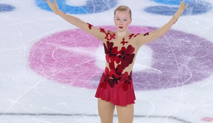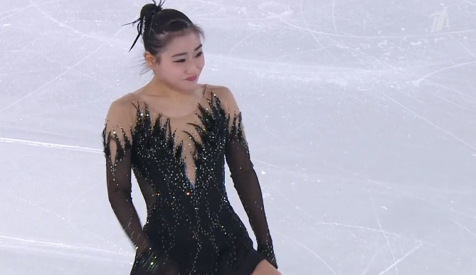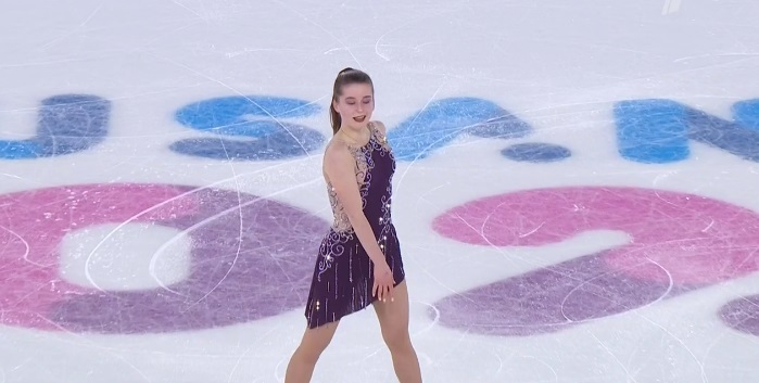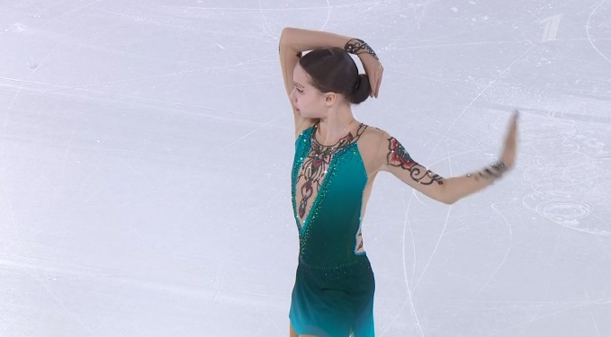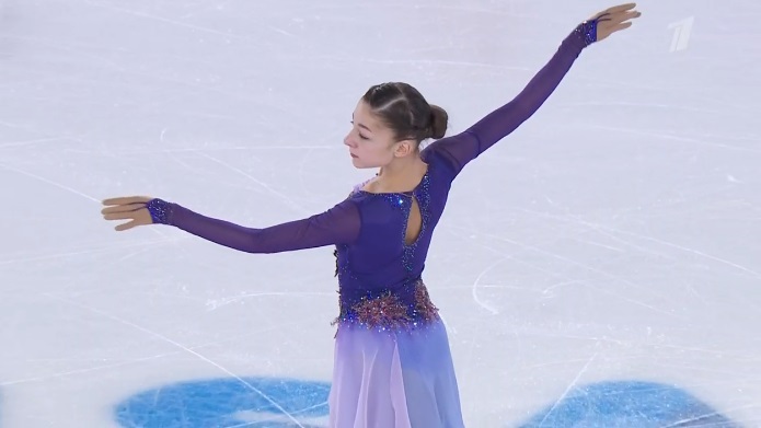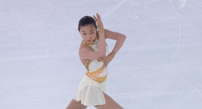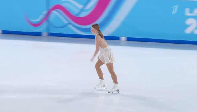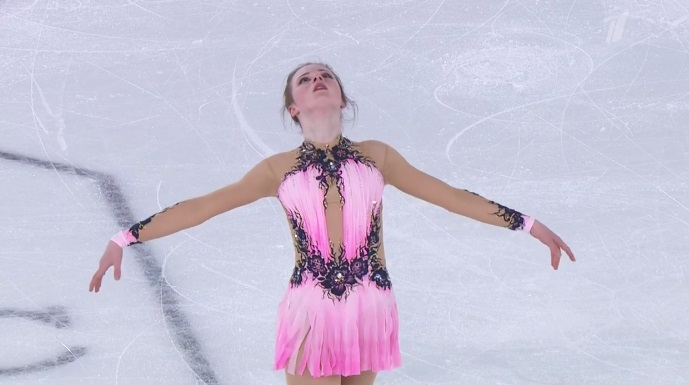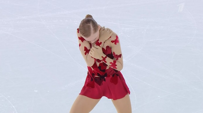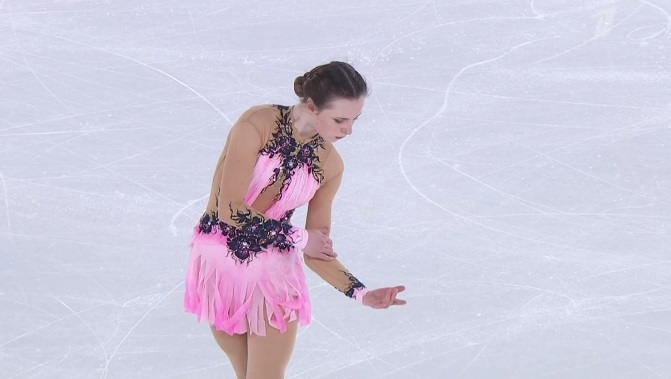 Как и почти все сегодняшние участницы, тоже допустила грубую ошибку, но только одну — бабочка на тройном риттбергере. В остальном это был просто идеальный прокат. Особенно обидно, что до этого блестяще исполнила каскад 3 лутц — 3 риттбергер, а на сольном прыжке ошиблась. Ну, бывает. Это очень сильное выступление ученицы Светланы Пановой. Зато аксель в два с половиной оборота сделала. Готовится в будущем 3,5 прыгать.