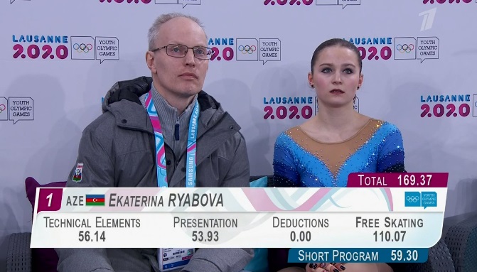 Тренирующаяся в Москве в академии Евгения Плющенко у Александра Волкова, но представляющая Азербайджан Екатерина Рябова на льду.