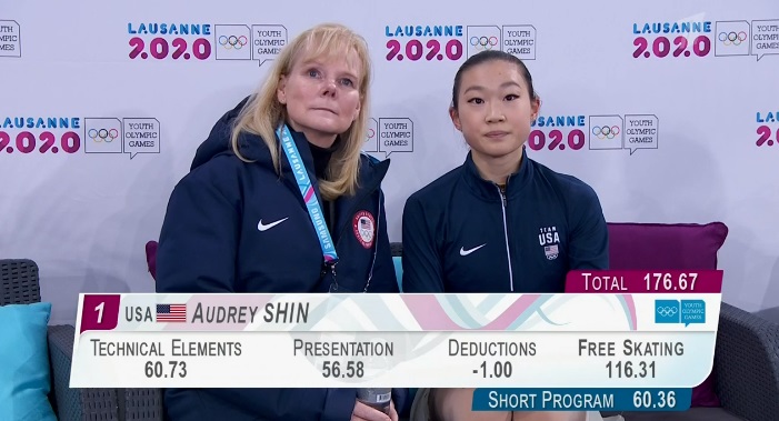 Завершает выступление второй группы американка Одри Шин. Она показала лучший результат в короткой из тех, кто уже выступил.