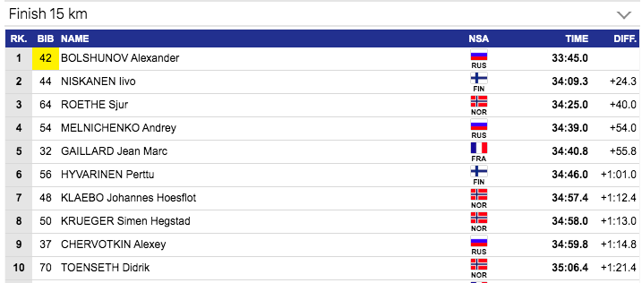 Да, норвежец Шюр Рете обошел на финише время Мельниченко на целых 14 секунд и завоевал бронзу. Больше в тройке изменений произойти не должно. Обидно за Андрея, но он в любом случае показал отличную гонку сегодня.