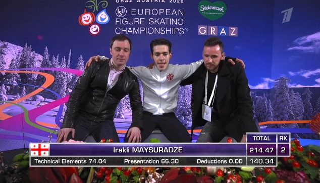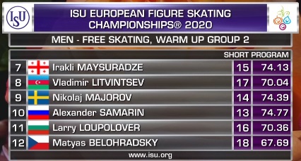 Вот оценки Майсурадзе. Второй в произвольной программе. По сумме он тоже второй.