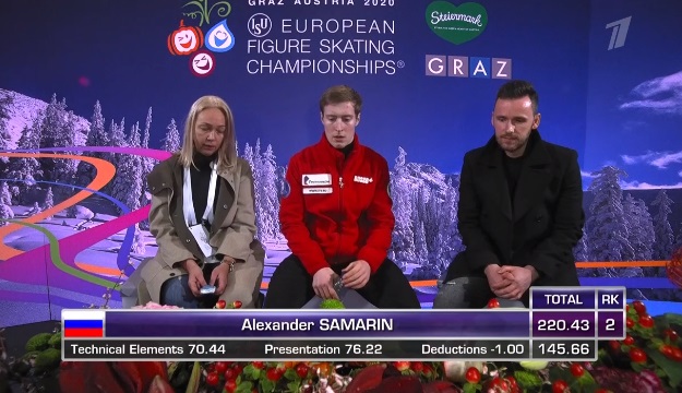 Итак, оценки Самарина. Только третий среди выступивших... По сумме уступил Литвинцеву... Второй пока.