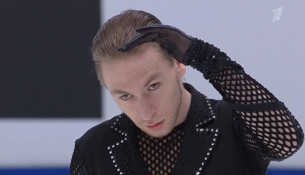 Начал с тройного акселя с небольшой помаркой, а затем упал на тройном лутце. Сделал каскад 3 аксель — 2 тулуп, сделал тройной риттбергер. Дорожка шагов четвертого уровня. 2 аксель — ойлер — 3 сальхов сделал, 3 лутц — 3 тулуп сделал, тройной флип сделал. Не все получилось явно.