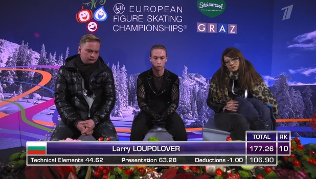 Представляющий Болгарию Ларри Луполовер на льду. Родился в США, говорит по-русски, выступает под рок.