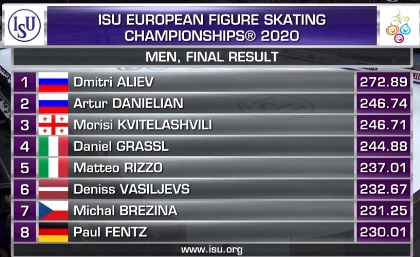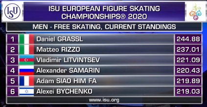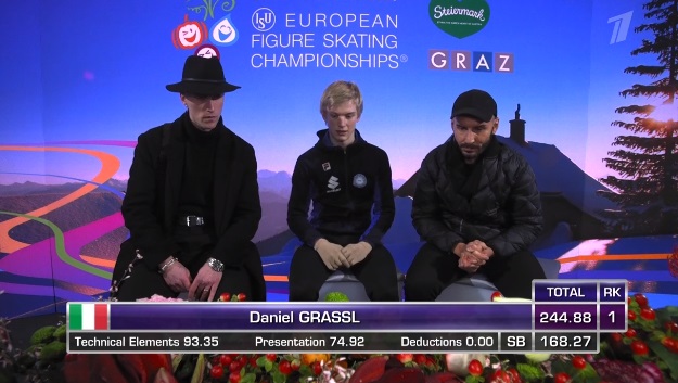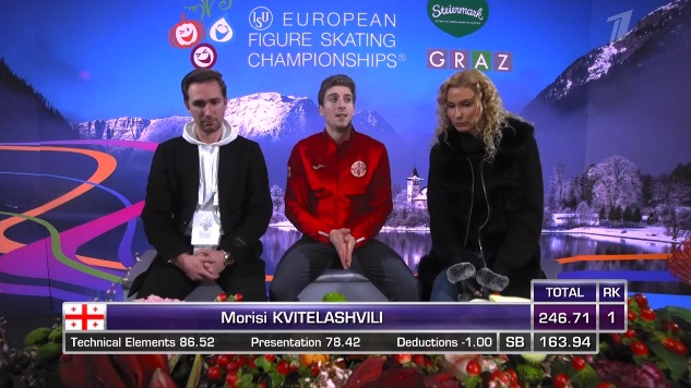 Оценки Квителашвили выводят его на первое место по сумме, хотя именно произвольный прокат Грассля был лучше.
