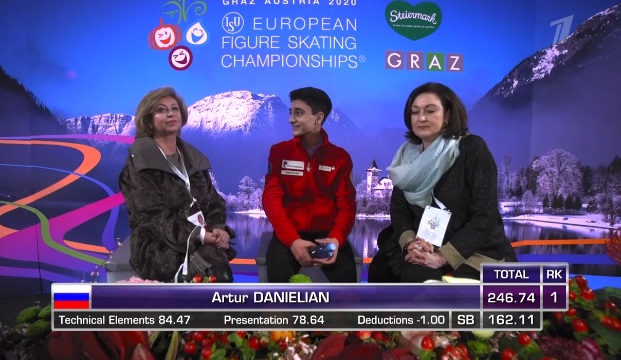 Вот что получает Даниелян. Он становится новым лидером и обеспечивает себе минимум бронзу! Хотя именно произвольный прокат у него третий на данный момент.