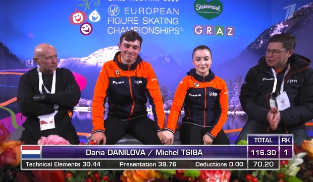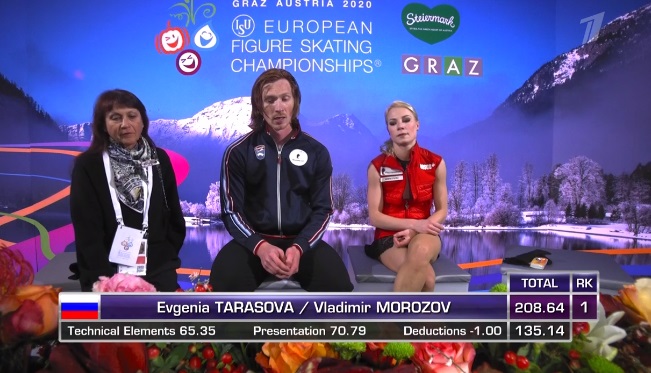 Выходят ученики Марины Зуевой на первое место. Теперь Тарасова и Морозов будут ждать выступлений конкурентов.