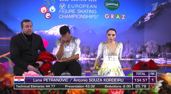 На льду выступающие за Хорватию Лана Петранович и Антониу Соуза Кордейру.