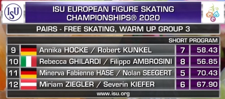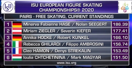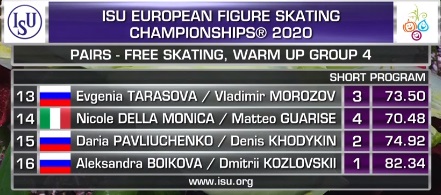 Здравствуйте, уважаемые любители фигурного катания. Вашему вниманию текстовая онлайн-трансляция произвольной программы спортивных пар на чемпионате Европы.
