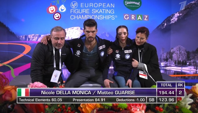 На льду итальянцы Николь Делла Моника и Маттео Гуаризе.