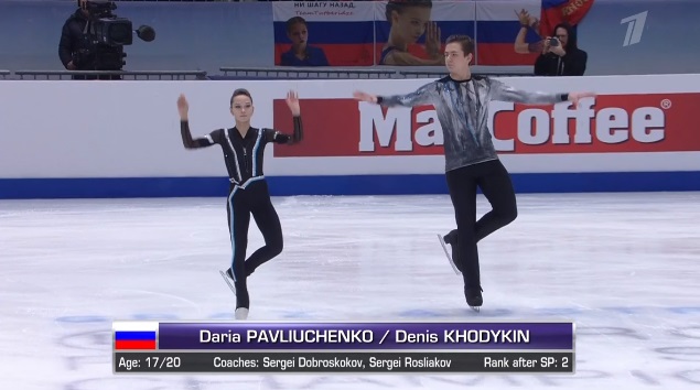 На льду второй российский дуэт: Дарья Павлюченко и Денис Ходыкин.