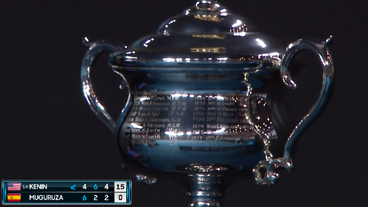 Кенин подает и быстро делает счет 15:0. Нам уже начинают показывать кубок Australian Open.