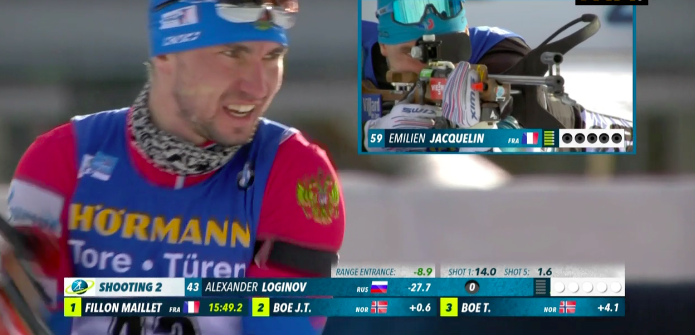 Француз Жаклен финишировал шестым (на данный момент). Так сильно сдал на последних километрах, что даже точная стрельба бы уже не помогла бы догнать Логинова, а уж с одним промахом все тем более стало понятно. Кажется, золото чемпионата мира — наше!