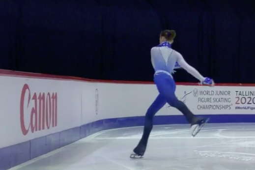 Эх, ошибка! Девушка приземляется на две ноги после тройного лутца и не может добавить к нему двойной тулуп — теряет каскад.