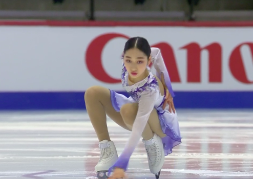 Фигуристка без видимых усилий исполняет в начале программы каскад тройной лутц + тройной тулуп. Также легко у нее выходит двойной аксель — с типично азиатским мягчайшим приземлением, как у кошечки.