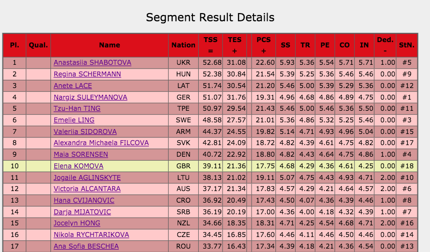Оценки Елены Комовой из Великобритании отправляют ее на промежуточное десятое место: