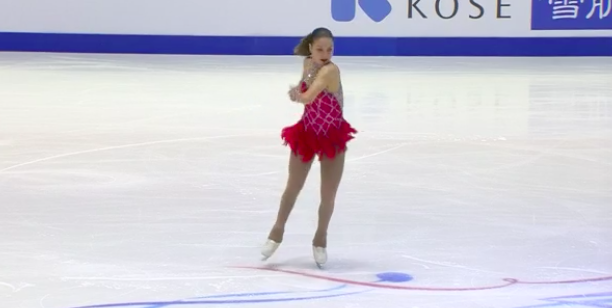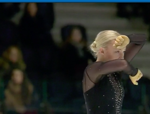Уже достаточно взрослая девушка смогла глубоко передать смысл композиции о потере любви — в этом ей помогло и поставленное гладкое скольжение, и уверенное исполнение базовых прыжков. Любопытно, что при выходе из вращения она однажды споткнулась, и на лице даже возникла паника, но видно это было только в замедленном повторе, — фигуристка быстро справилась с ЧП, и судьи ничего не отминусовали.