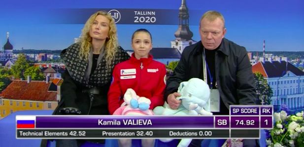 Оценка Валиевой выводит ее на первое место с большим отрывом! Заслуженно. Сейчас первую тройку составляют три россиянки, и все — ученицы Тутберидзе.