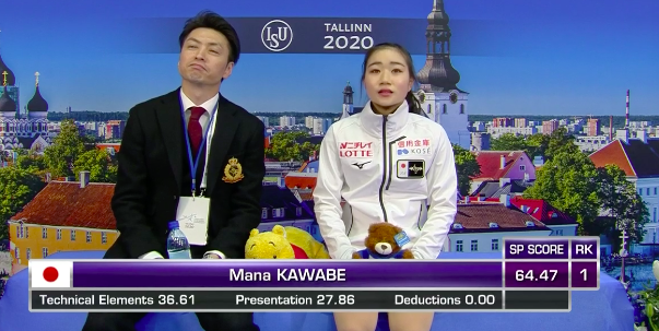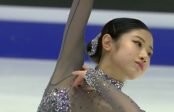 Выступление японки выглядело очень солидно. С неизменной улыбкой на лице, уверенно и спокойно она исполнила двойной аксель, тройной лутц + тройной тулуп, а финальный тройной риттбергер был исполнен с таким запасом по высоте, что публика взорвалась аплодисментами.