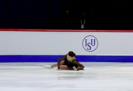 Ох, как больно! Девушка очень долго готовилась и медленно подъезжала к каскаду тройной лутц + двойной тулуп, но в итоге приземлилась прямо на пятую точку после первого же прыжка.