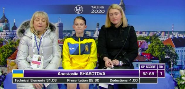 Тренеры успокаивают Настю: «Умничка! Ничего не закончилось, все только начинается. Как звезда сидишь». Оценки Шаботовой выводят ее на промежуточное первое место: