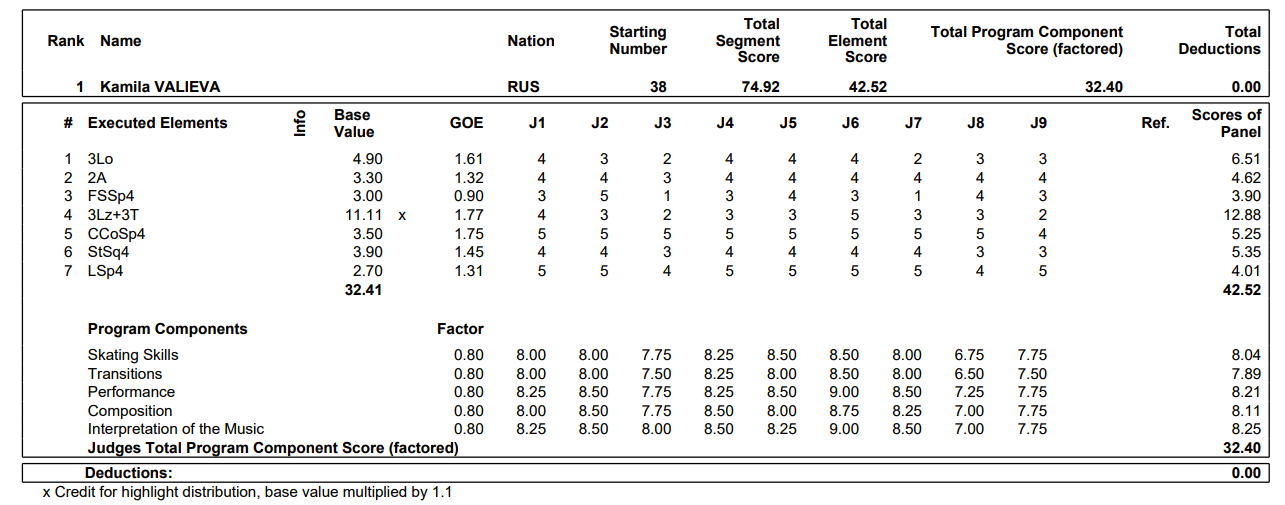 Детальный протокол оценок Камилы Валиевой (картинка увеличится при клике):