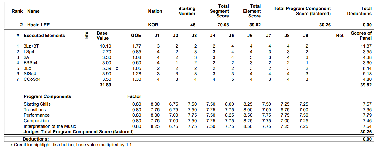Протокол оценок Хаен Ли (картинка увеличится при клике):