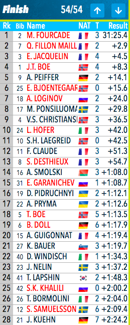 5 down for the top 3 but Fourcade and Jacquelin closed the gap to less than 10 seconds #KON20 pic.twitter.com/kmUOnha0qM