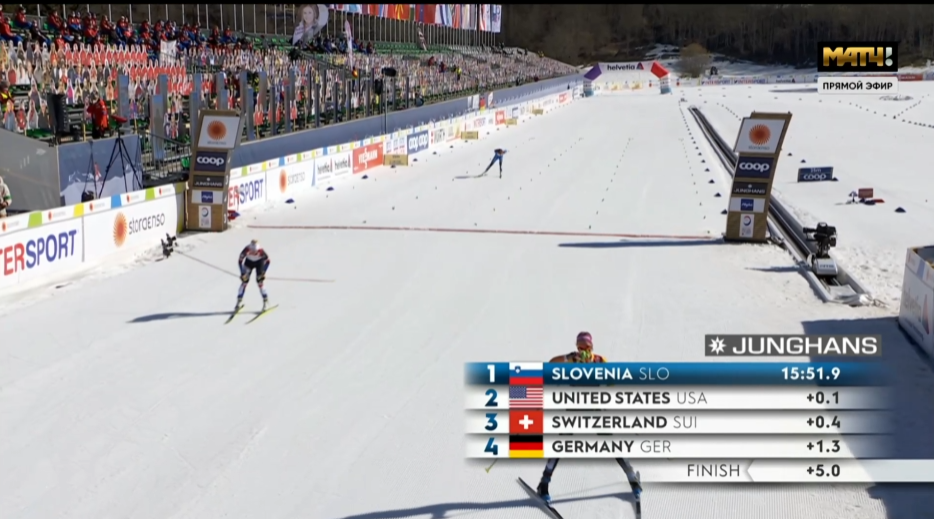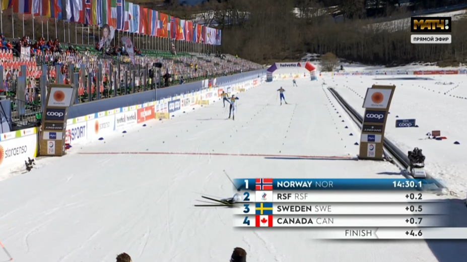 Отъехал на финише Ретивых от Клебо, но остановился, понимая, что смысла особого тратить силы нет, и финишировал спокойно вторым. Таким образом, в финале Норвегия, Россия, Швеция и Канада.