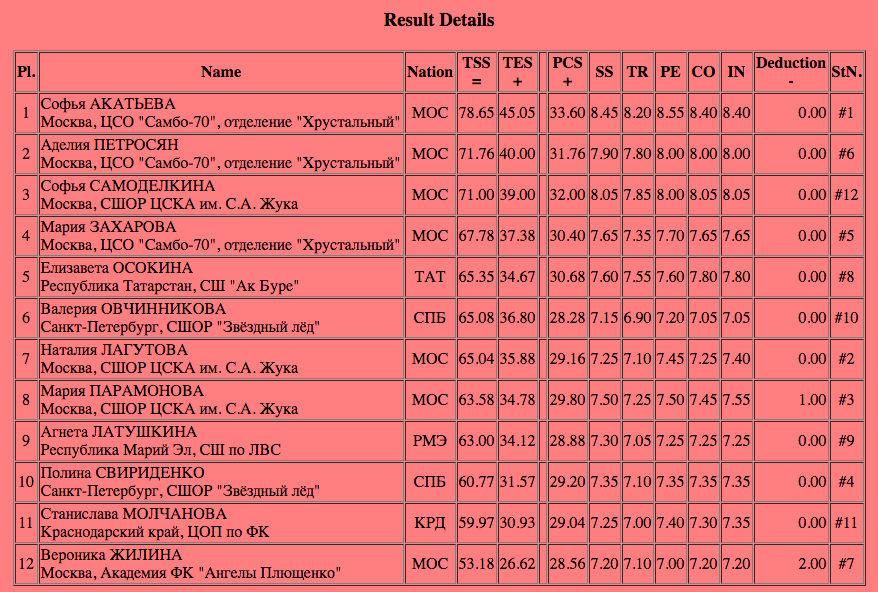 Стоит отметить, что Лагутова немного ошиблась с тем, какие прыжки исполнять. Четверной тулуп, с которого она упала, был засчитан как тройной, а затем девушка сделала еще два тройных тулупа в каскадах. В итоге один из них был не засчитан, поскольку три одинаковых тройных прыжка в программе делать нельзя.