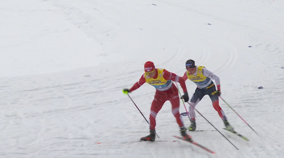 Клебо быстро создал комфортный отрыв и выиграл этот спринт на финише! Большунов понял, что за золото уже не поборется и бросил бежать.
