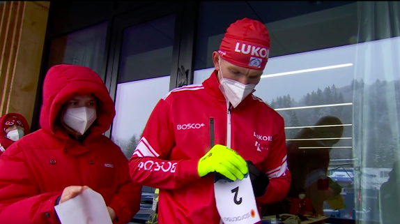 Большунов потихоньку готовится к своему этапу. Придется постараться, чтобы заехать на пьедестал.